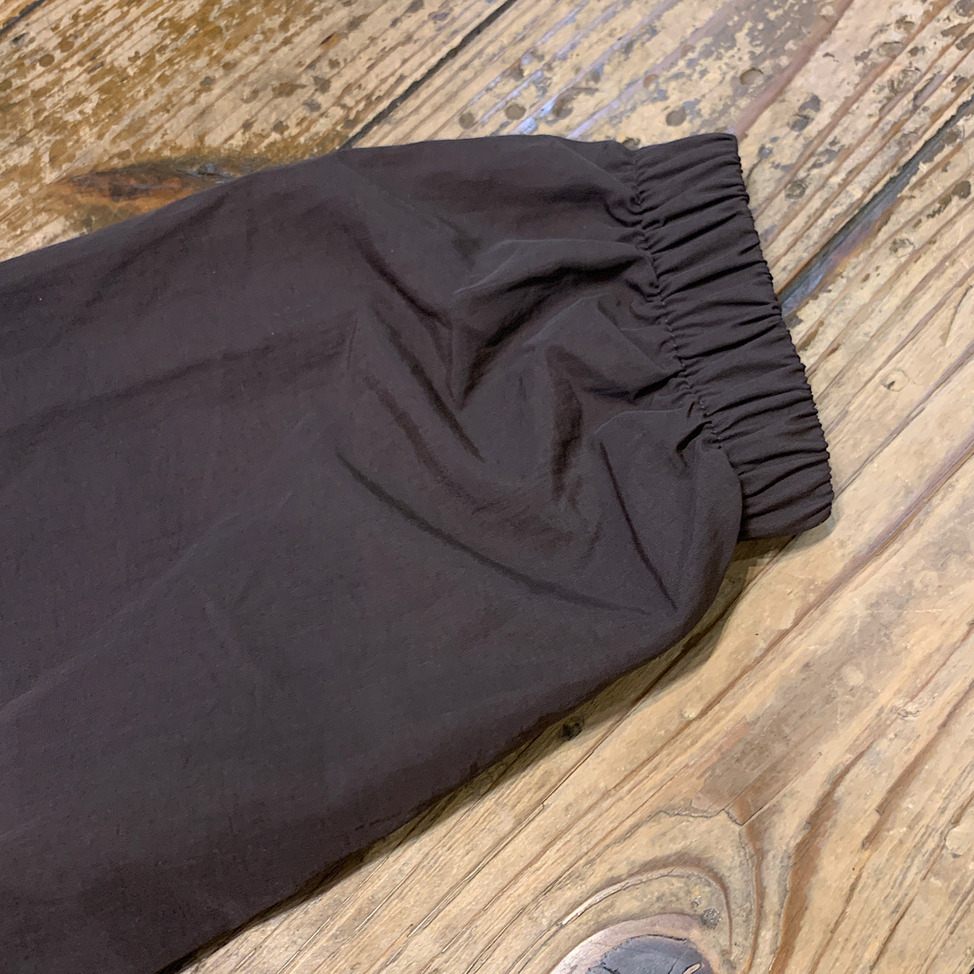ミリタリー用トレーニングウェアをモチーフにし、シワ加工でナイロン素材ながらもコットンのような雰囲気です。