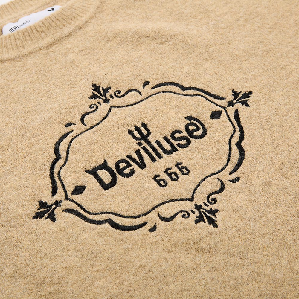 DEVILUSE Emblem Knit Crewneck(Khaki)