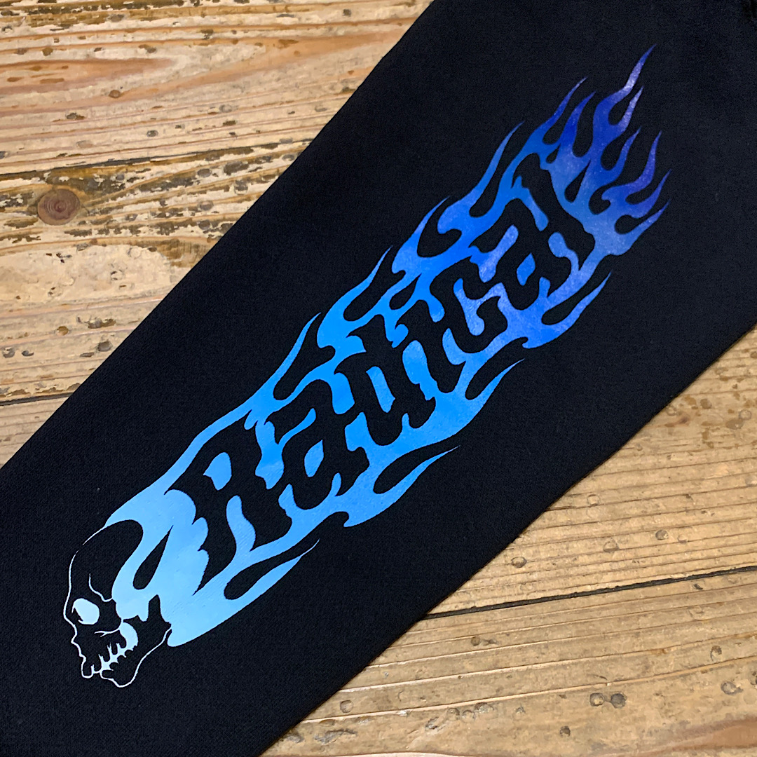 フロントは墨黒、袖のフレームスは豪華にグラデーションプリントになります。