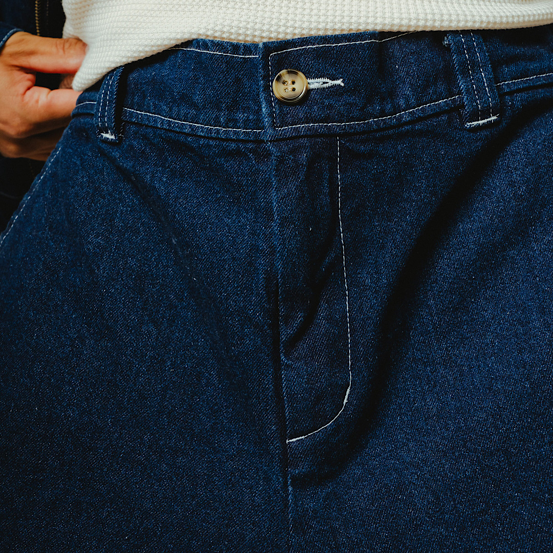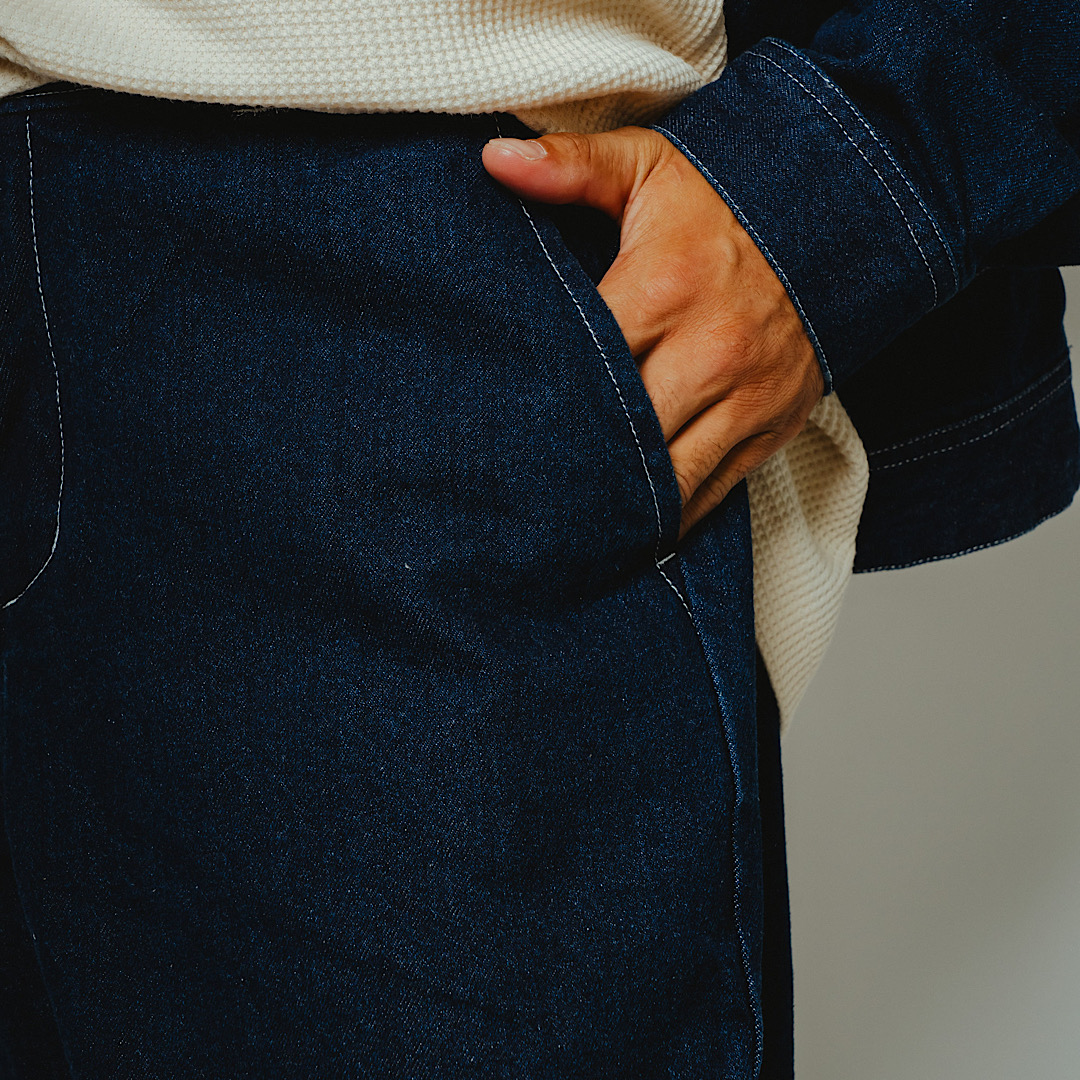 程よい厚みのデニム/ヒッコリー生地は、ジャケット同様に馴染みの良さと経年変化を楽しめるのが魅力。ガシガシ穿いて、洗って、育てるほどに自分だけの一本になっていきます。
