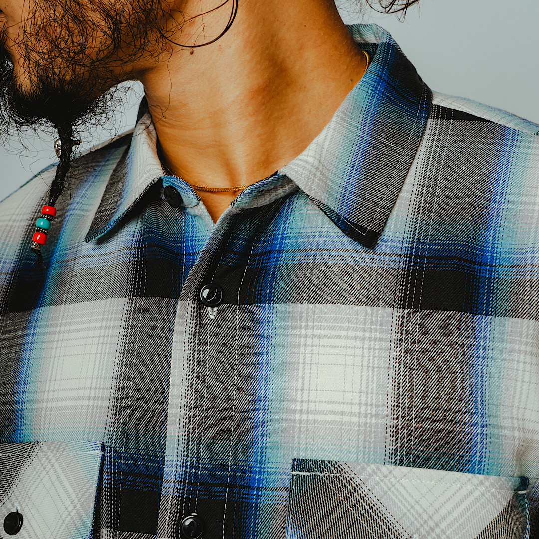 BIG MIKEアーカイブから厳選したヴィンテージアイテムをもとに、生地感と柄の雰囲気を丁寧に再現したライトフランネルシャツ。クラシックなチェック柄に、コットン100%ライトフランネル特有のふわりと柔らかな起毛感が加わり、着た瞬間から“ちょうど良い温もり”を感じられる仕上がりです。