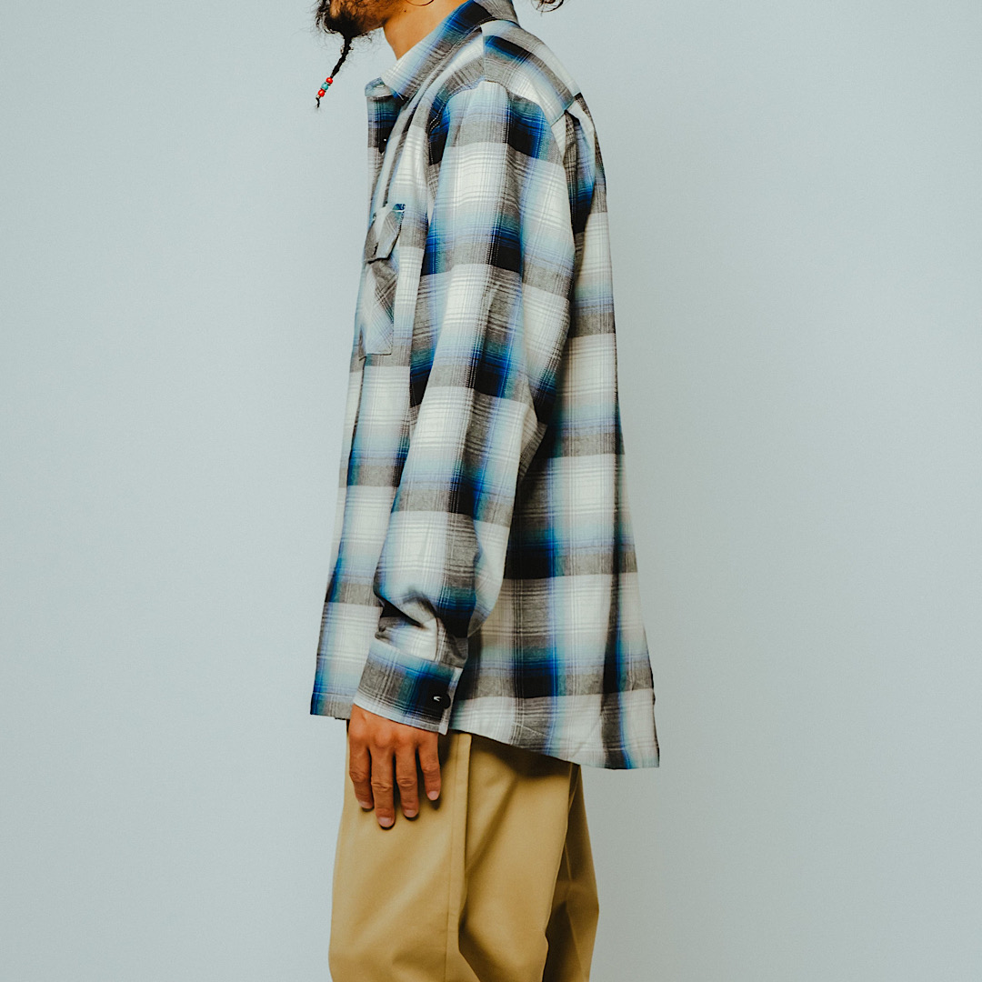 BIG MIKE Light Flannel L/S Shirts(White×Black×Blue×Mint)