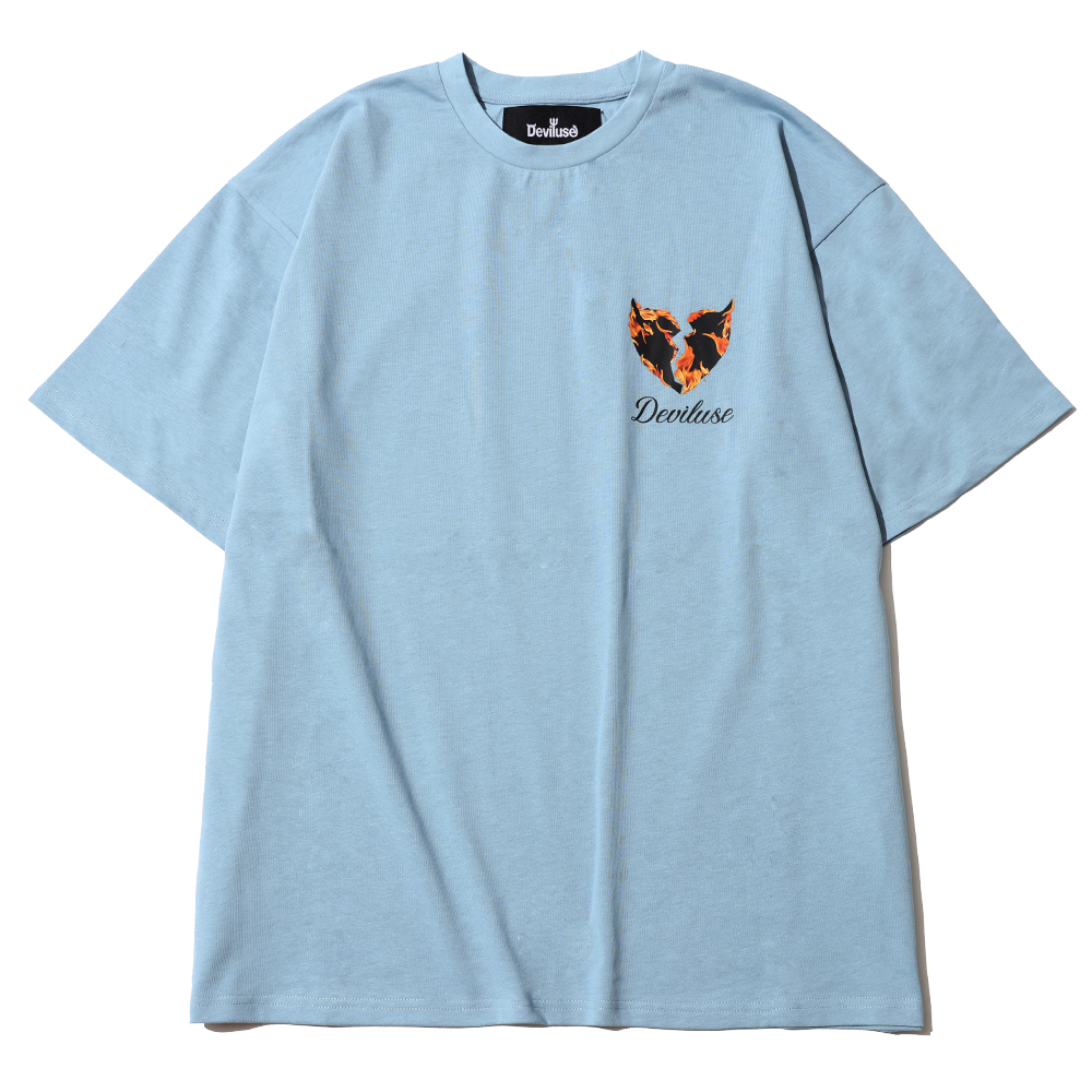 DEVILUSE Flame Heart T-shirts(Stone Blue)