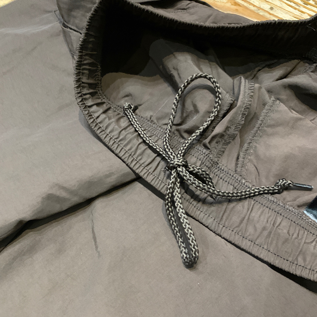 ミリタリー用トレーニングウェアをモチーフにし、シワ加工でナイロン素材ながらもコットンのような雰囲気です。