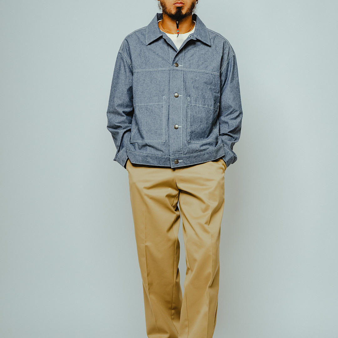 「デニムジャケットほど重くなく、シャツ一枚では心許ない」そんな春から初夏の端境期に最適なのが、このシャンブレーショートジャケットです。