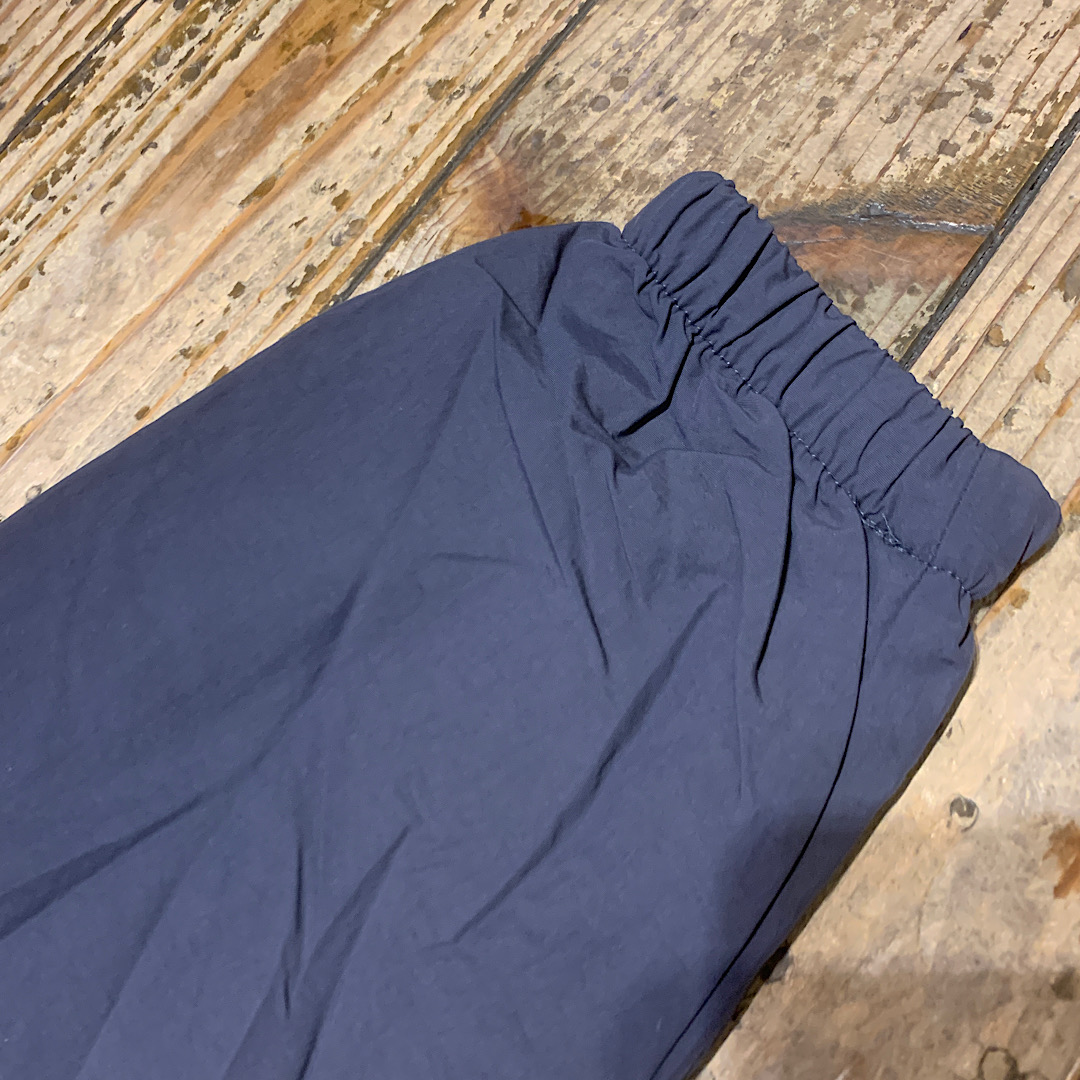 ミリタリー用トレーニングウェアをモチーフにし、シワ加工でナイロン素材ながらもコットンのような雰囲気です。