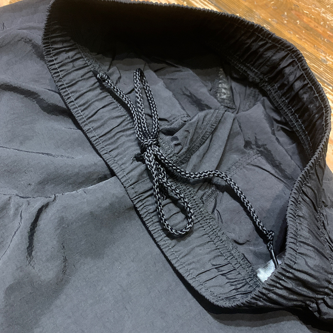 ミリタリー用トレーニングウェアをモチーフにし、シワ加工でナイロン素材ながらもコットンのような雰囲気です。