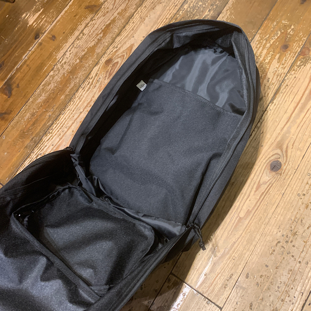 背面のクッション材をあえて抜いたアンコンストラクテッド・バックパックで600 デニールポリエステルのオックスフォード生地を本体部分に使用し、メイン収納部内側にPC等の収納に適したオープンポケット1ヵ所、ダブルジッパー仕様のフロントポケットで日本人の生活にバッチリ合致したバックパックになります。