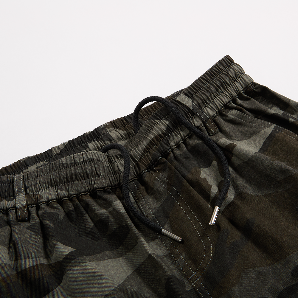 ワイドなシルエットのカモカーゴパンツ。