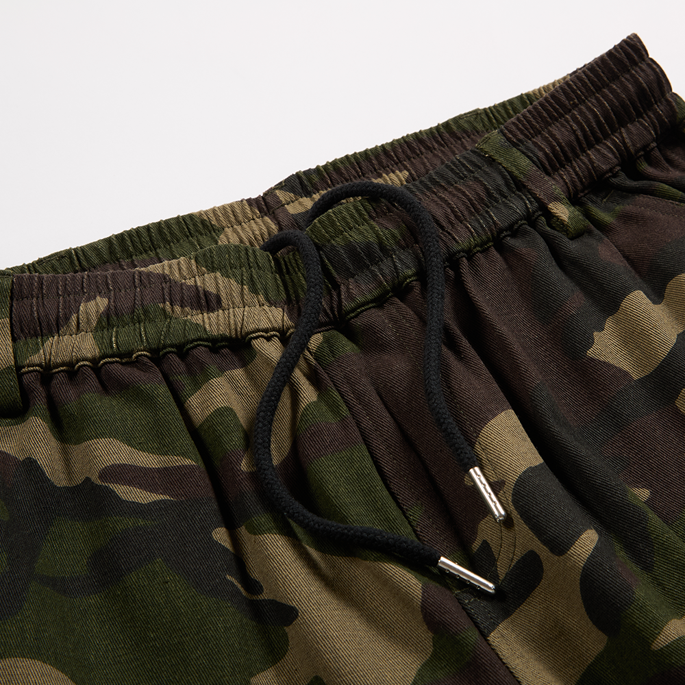 ワイドなシルエットのカモカーゴパンツ。