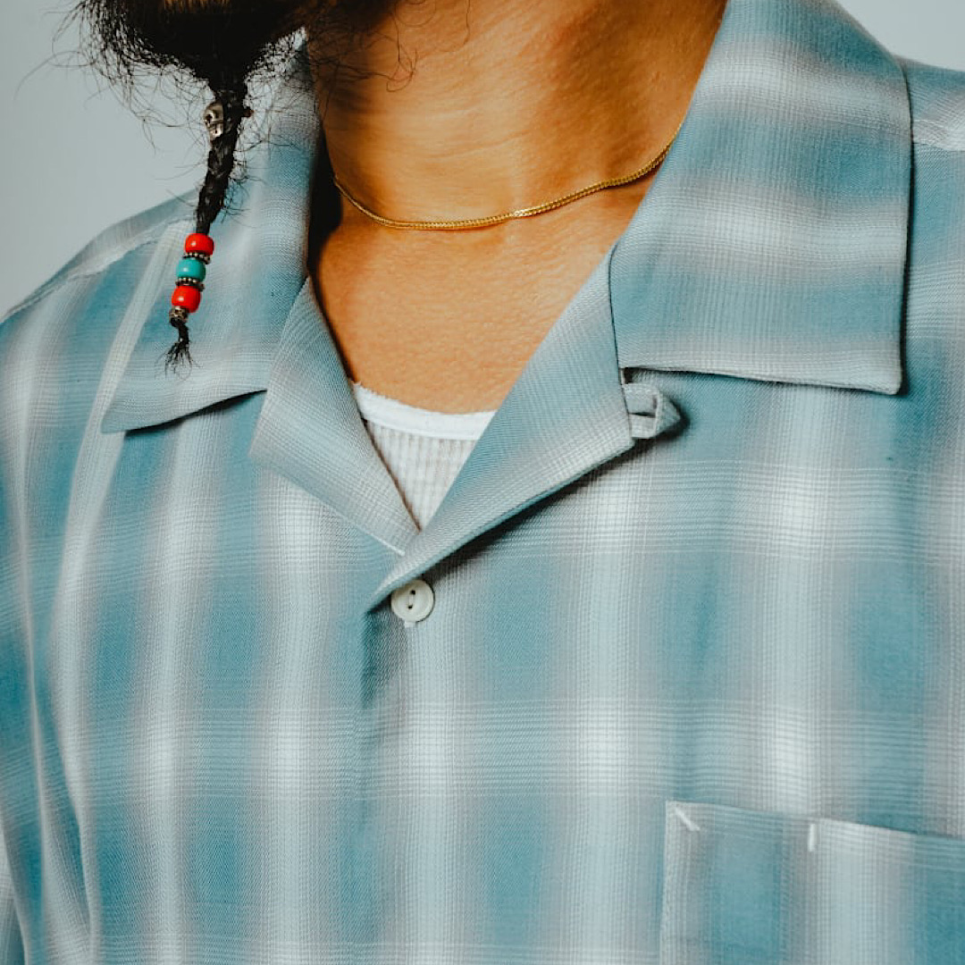動きに合わせてしなやかに揺れる生地が、ヴィンテージライクな雰囲気と、どこか色気のある表情を演出します。無骨なワークシャツとは一線を画す、“ラフに着ても様になる”一着です。